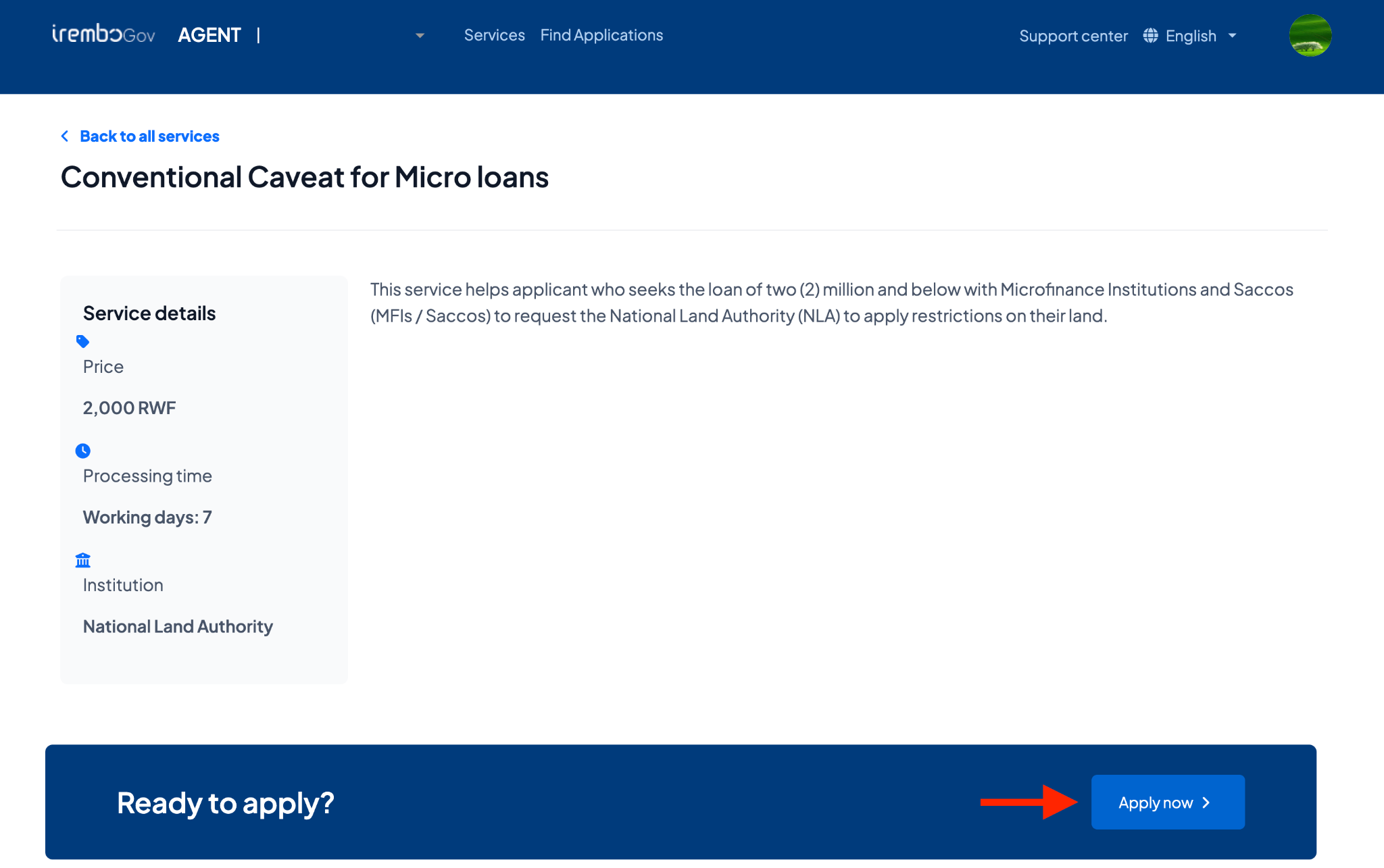 Upon successful processing, the User will receive a notification that their application has been approved and the caveat has been applied to their land. If they don’t receive an SMS notification about their application status within five (5) working days after submission, please advise them to contact Irembo support at 9099 or support@irembo.com.