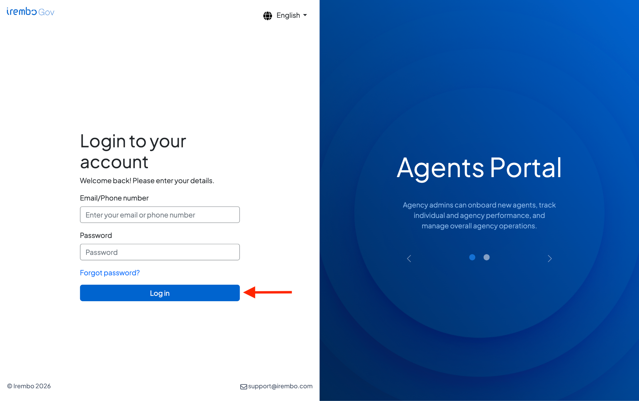 To begin, go to the IremboHub Agent portal at agent.irembohub.com and log in to your account.