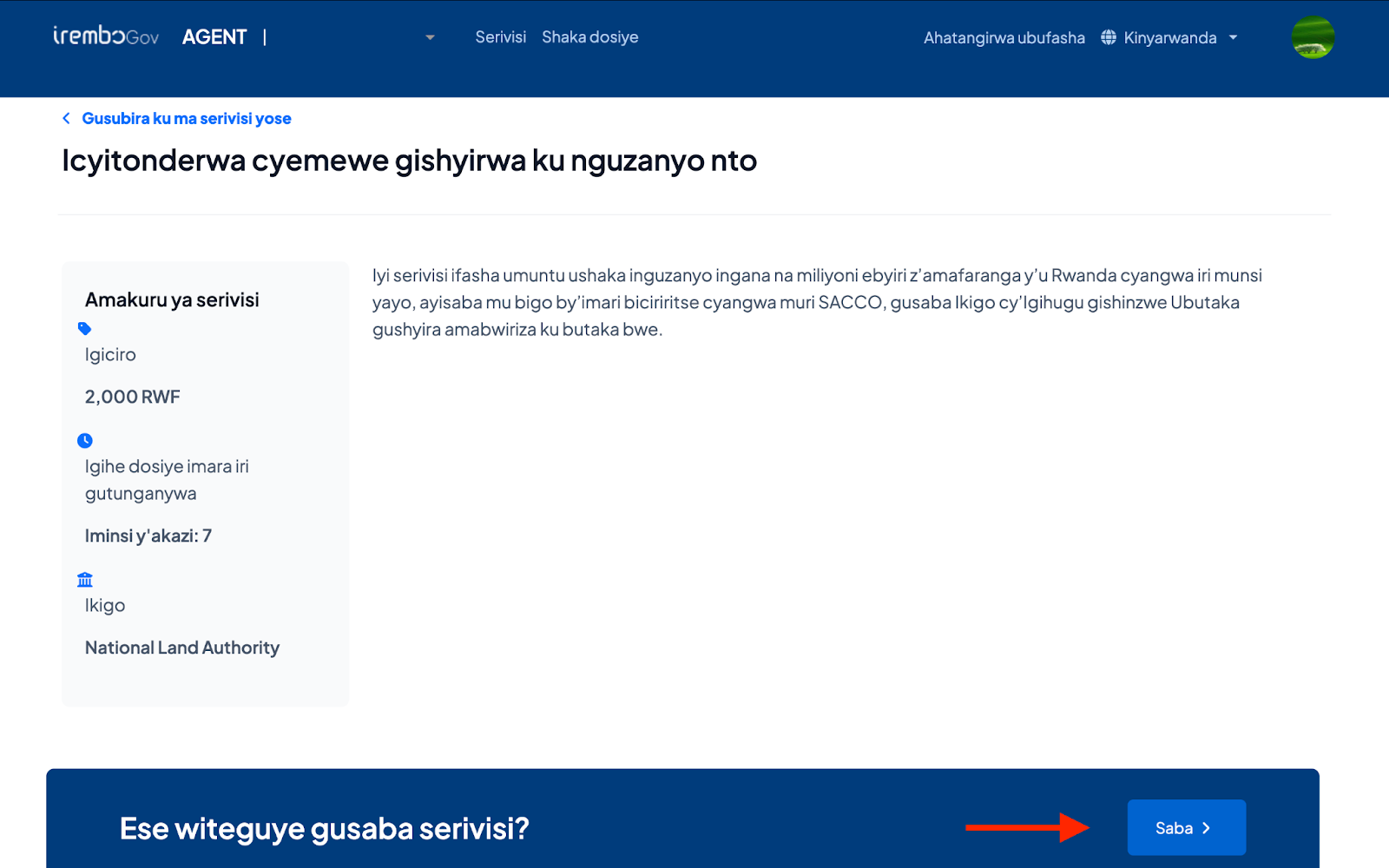Soma amakuru ya serivisi witonze hanyuma ukande “Saba”.