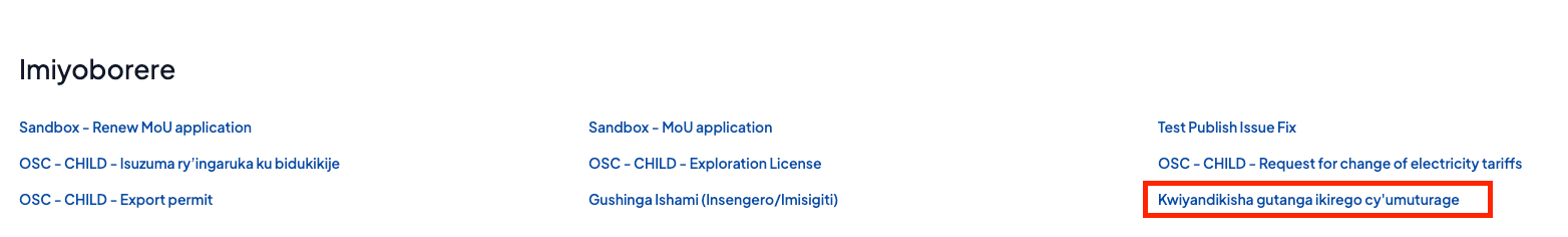 Usaba azahabwa nomero y’ubusabe (C……) ashobora gukoresha kugirango akurikirane aho ubusabe bwe bugeze.