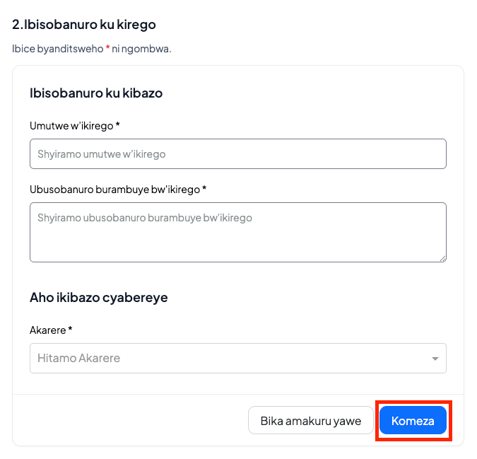 Ohereza inyandiko cyangwa ifoto yose ishyigikira ikibazo watanze.