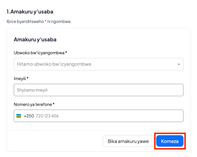 Usaba agomba kandi kuba ufite nomero ya telefone cyangwa aderesi ya imeyili ikora, kugira ngo abashe gukurikirana aho ubusabe bwe bugeze no kwakira ubutumwa bubwerekeye.